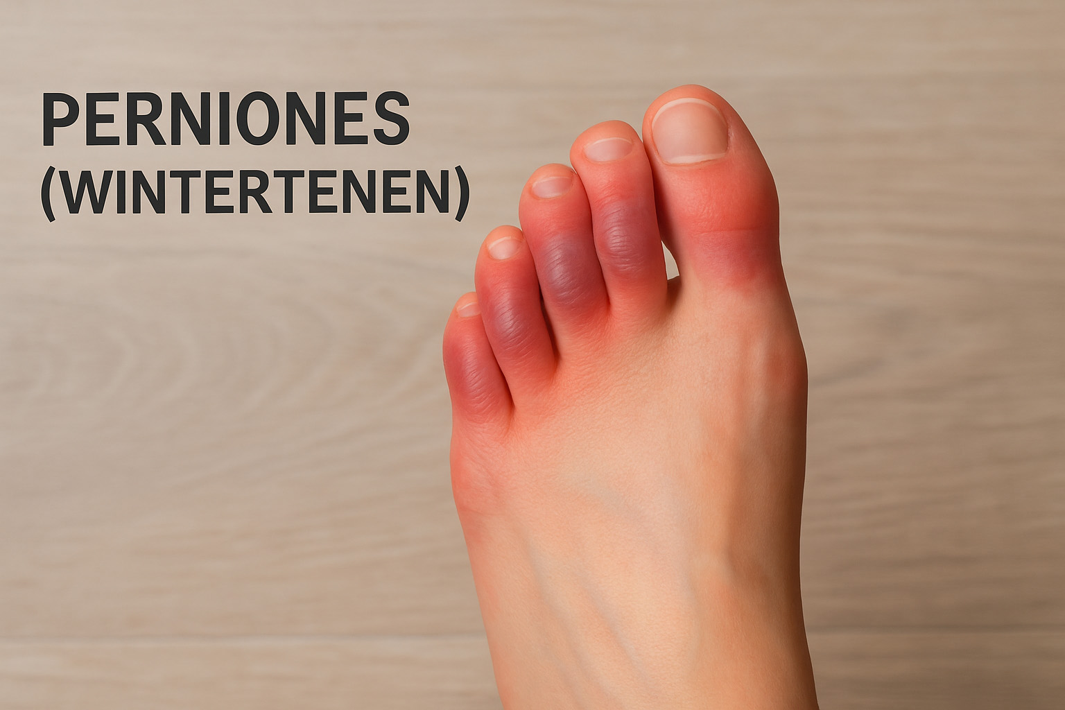 De medische naam voor de meer bekende “wintertenen”, “wintervoeten” of “winterhanden” is perniones. Bij perniones vindt er een abnormale reactie van de kleine bloedvaten plaats in de huid bij blootstelling aan kou. Wat voornamelijk in het voorjaar en de herfst optreedt. Perniones komt meer bij vrouwen dan bij mannen voor. Waarbij vooral mensen die veel in de koude buitenlucht of koude ruimtes werken er meer last van kunnen hebben.